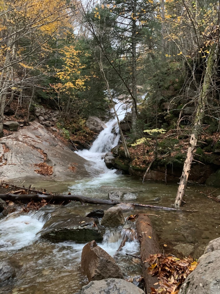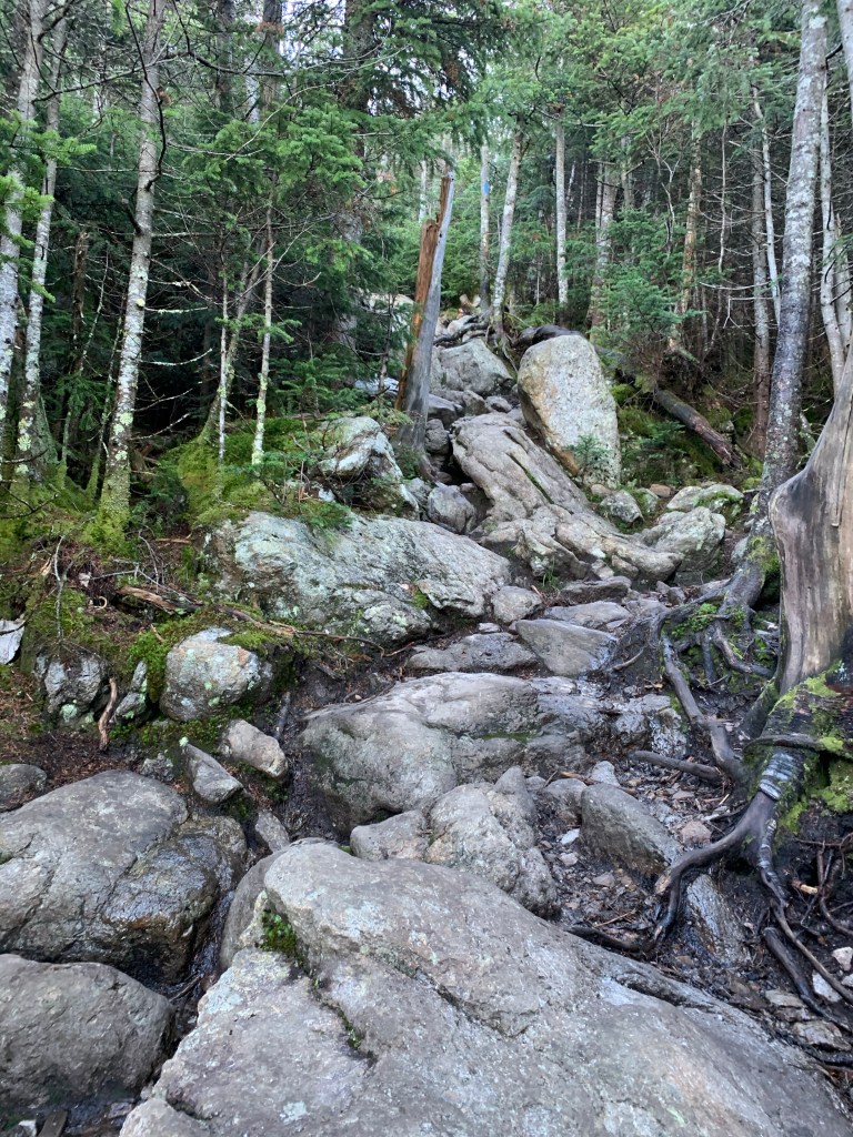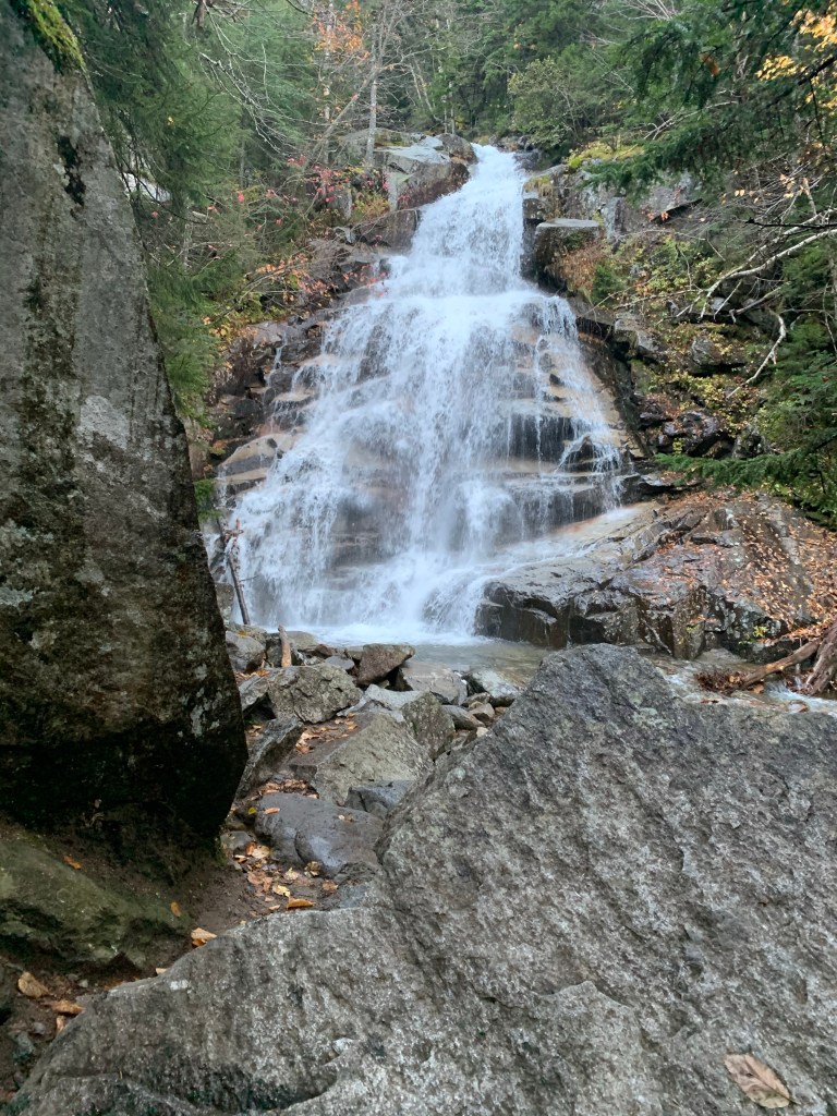 The ascent up Falling Waters Trail was very gradual and fast paced to start. A couple brook crossings but nothing very challenging. This quickly changed though. The brook widened, the boulders grew into ledges and the trail went vertical. I did manage to not get my boots soaked on the various crossings but did need to use my poles to accomplish this.