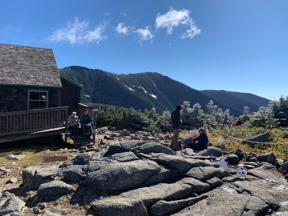 Once below tree line the winds were reduced to a reasonable level and it felt much warmer. I again was able to remove a layer and make my way down to Greenleaf Hut, the junction of Greenleaf and Old Bridle Path Trails. This are provides a great view back up the ridge I had just traversed.