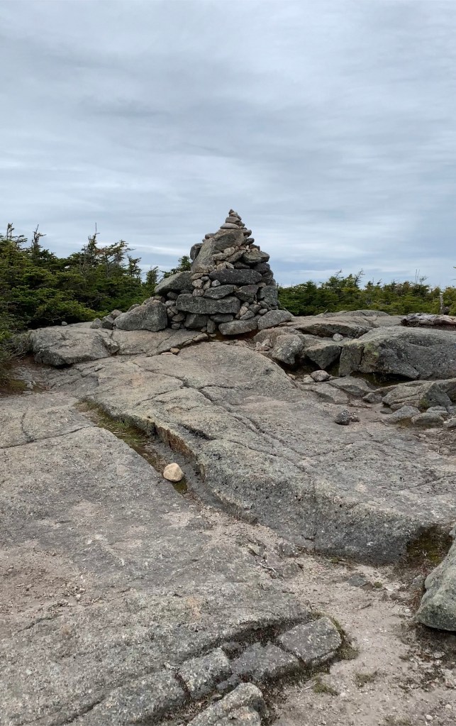 At about 1.5 miles from the junction of the Mt Kinsman Trail and Kinsman Ridge Trail is where things got steep. Not overwhelmingly steep but a noticeable change. Much more slab and boulder scrambling than the lower section. Unlike many trails I have hiked so far in the whites, there were a couple switchbacks which allowed a little pace increase and recovery during the steeps. Before I knew it I could hear what I thought was the summit. On many days I can hear the summit before I can see it. In this case, it was kind of a false summit with a few hundred of vertical left before the actual summit of North Kinsman.