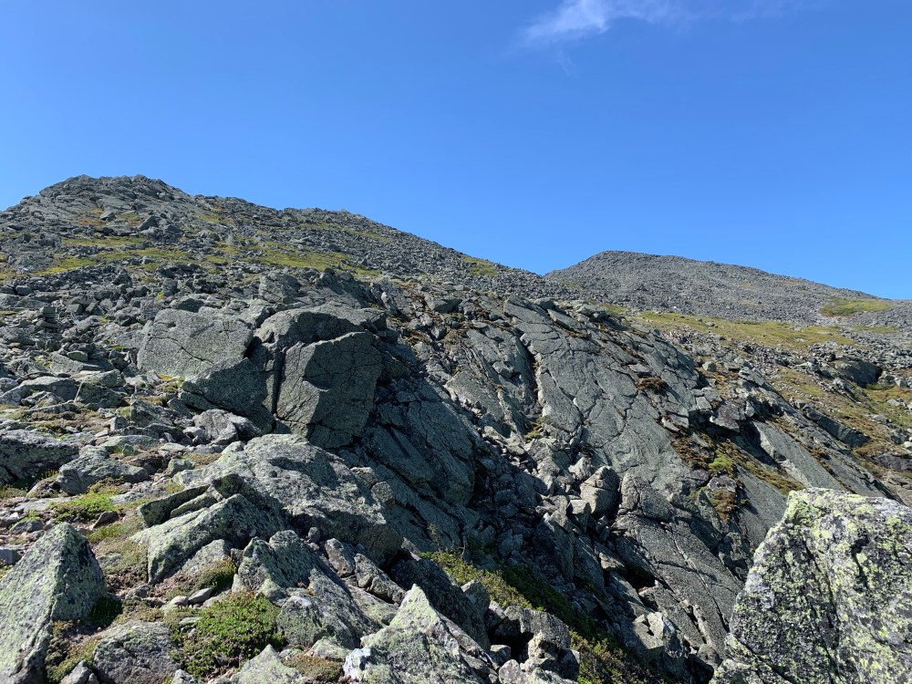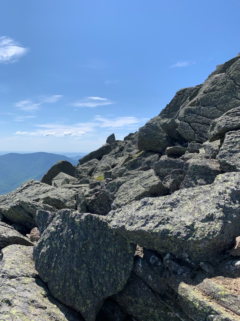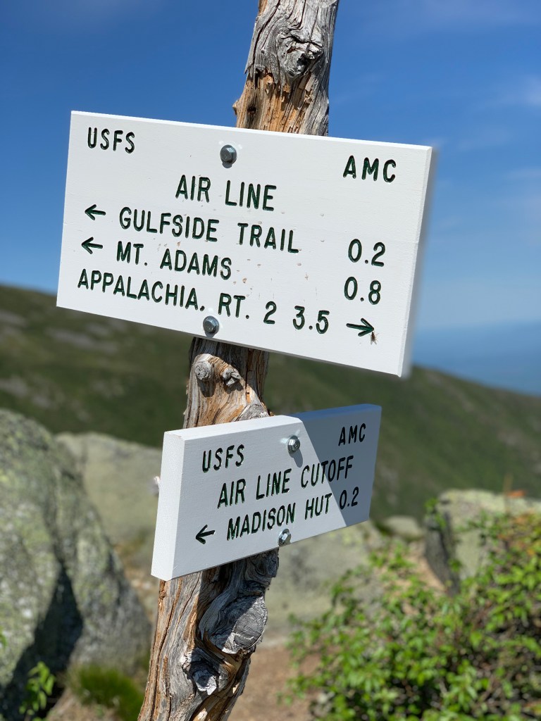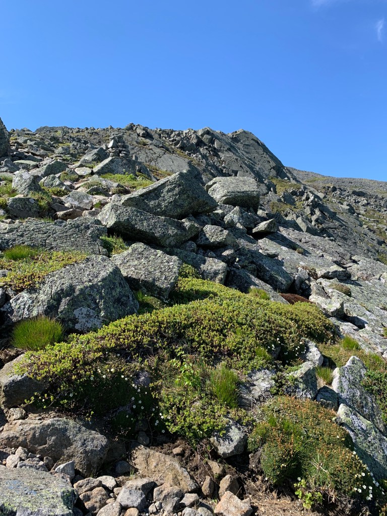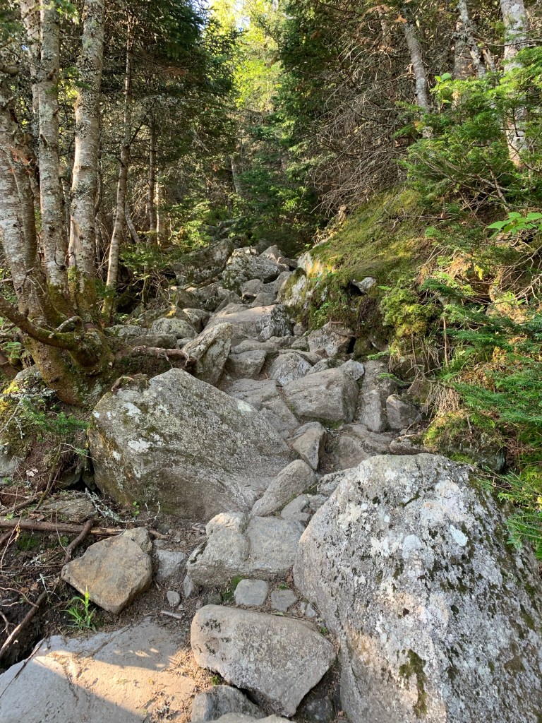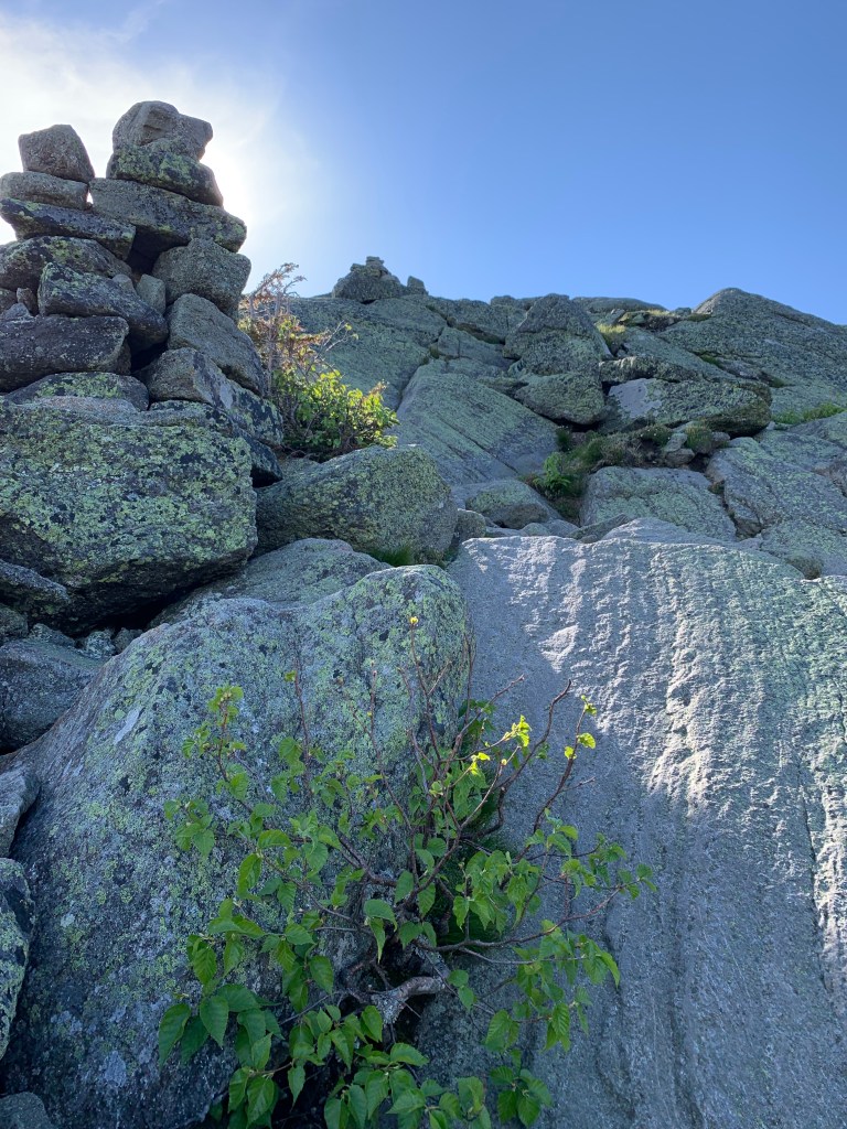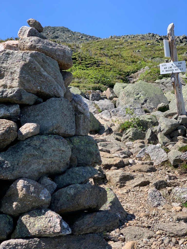 I returned to the hut from Madison and cruised by down to the Airline Cut-off trail. The plan was to take the cut-off to Airline Trail which would take me to the top of Adams. Getting to the base of Adams was much more a hike than it looked like from the hut. it was much longer and more challenging than I anticipated. About 90% of the mile-long hike is boulder hopping. Once I realized that what I was looking at was not the summit of Adams but John Quincy Adams, a minor summit not an official 4k, things were put into perspective that this was not going to be a cakewalk. Adams turned out to be VERY difficult. Such a steep ascent. I like to call it Karma Mountain. I felt like I was paying for considering the previous day’s hike of Mt Moosilauke easy.