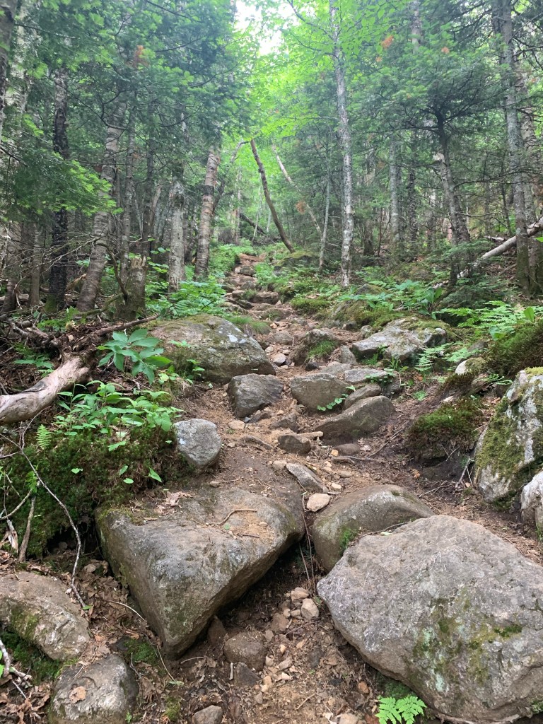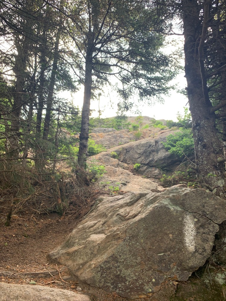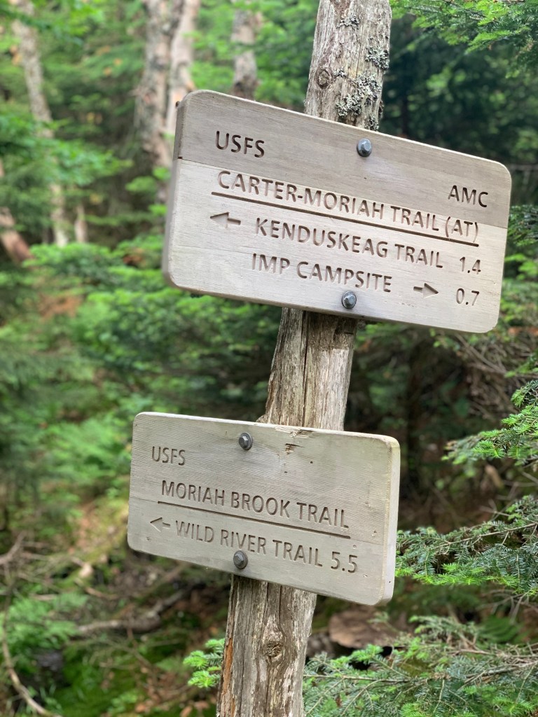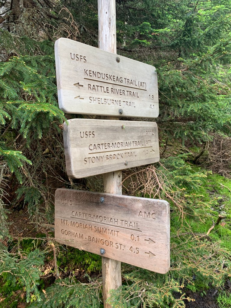 I was at the trailhead by around 5:15 Sunday morning. I knew the forecast for was temperatures around 90 with a chance of afternoon storms and I wanted to be sure I was off the mountain in plenty of time. My plan would to take me up Stony Brook Trail to Carter-Moriah Trail which would take me to the summit of Mt Moriah. My research indicated about a 10 miles hike with 3100′ of elevation gain. I should be done before noon.