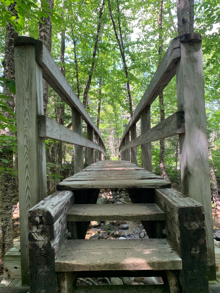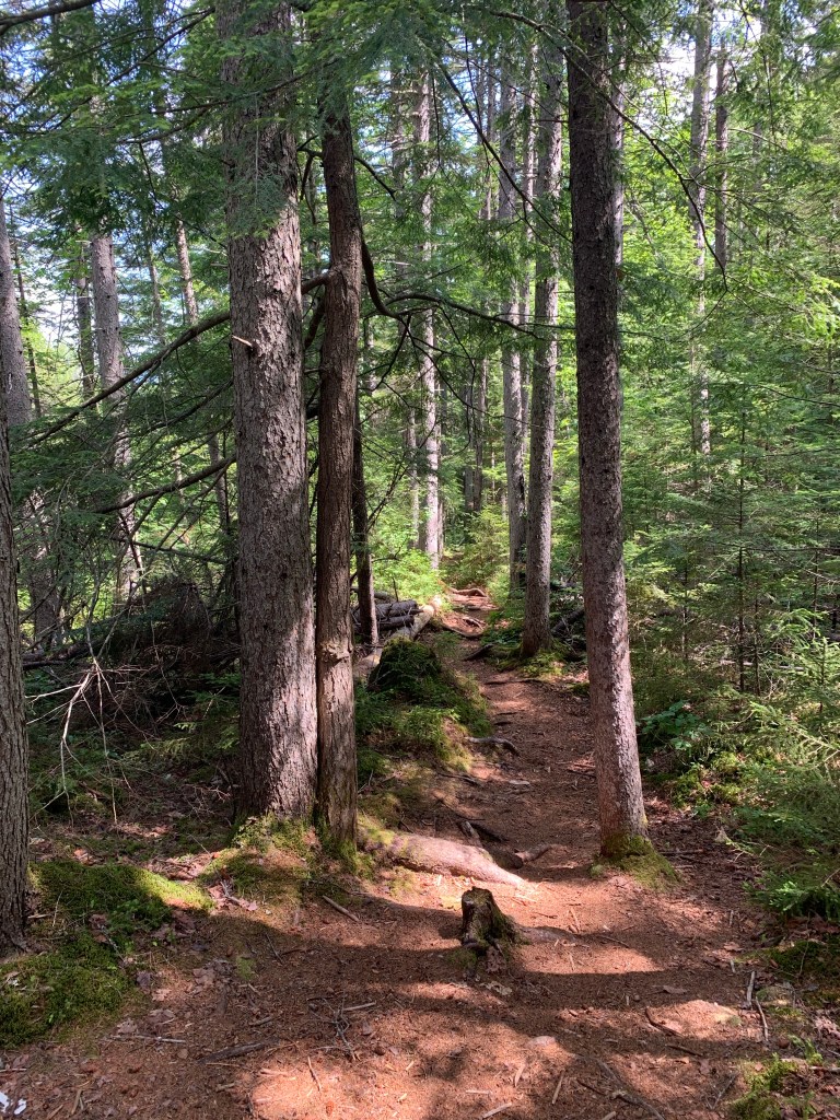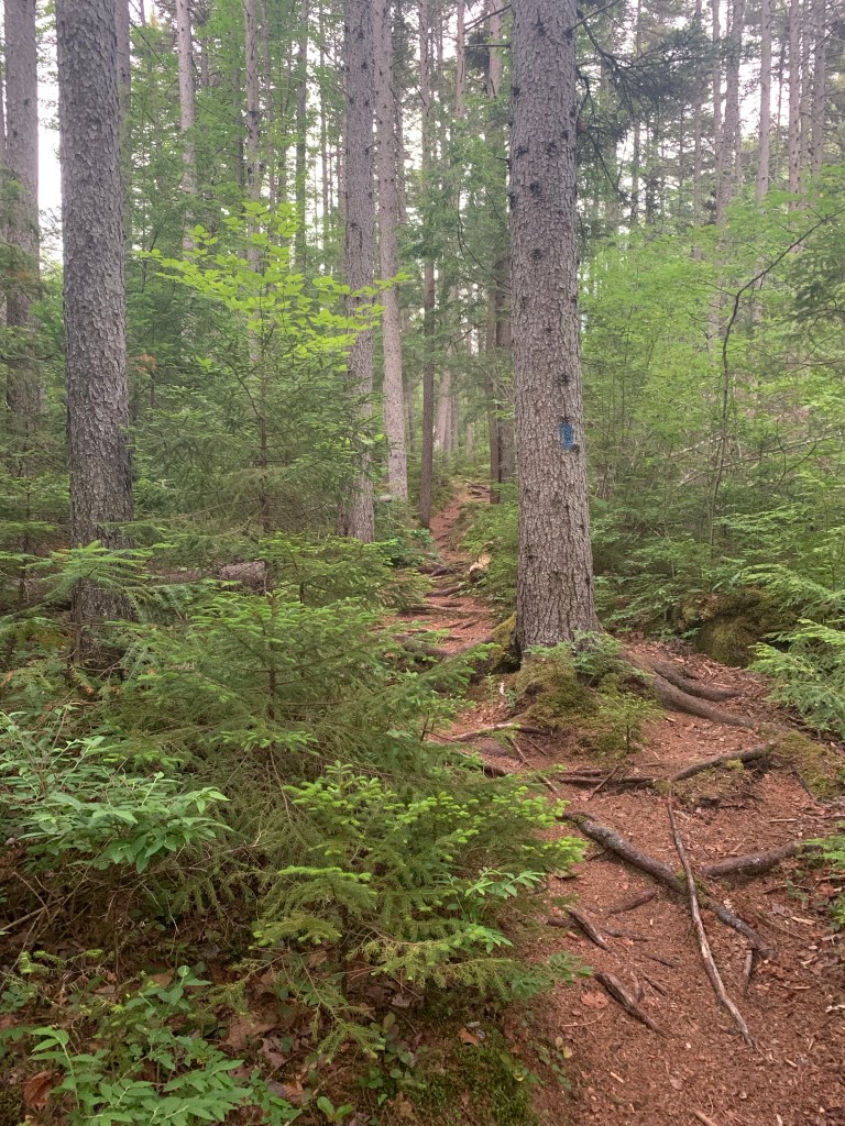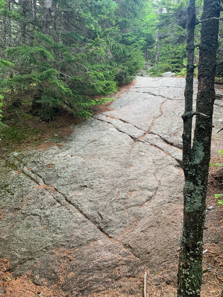 I was at the trailhead by around 5:15 Sunday morning. I knew the forecast for was temperatures around 90 with a chance of afternoon storms and I wanted to be sure I was off the mountain in plenty of time. My plan would to take me up Stony Brook Trail to Carter-Moriah Trail which would take me to the summit of Mt Moriah. My research indicated about a 10 miles hike with 3100′ of elevation gain. I should be done before noon.