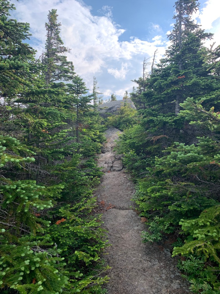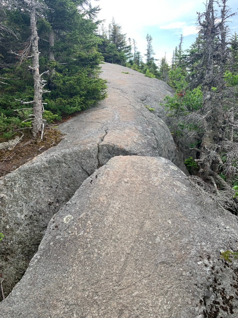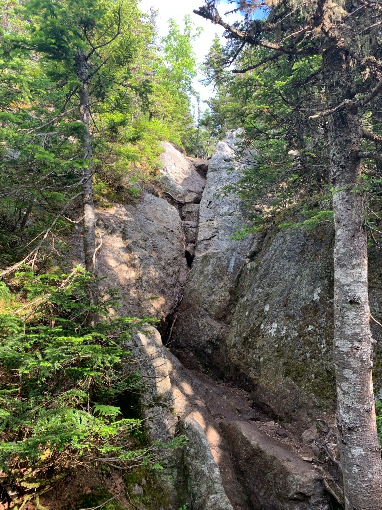 Once on the Carter-Moriah Trail that would bring me to the summit of Moriah, the terrain changed pretty drastically. The forest became more coniferous and the trail became rocky and with lots of ledge and exposure. The trail is not on the Terrifying 25 list but does offer some opportunity to test your skills and nerve a bit.