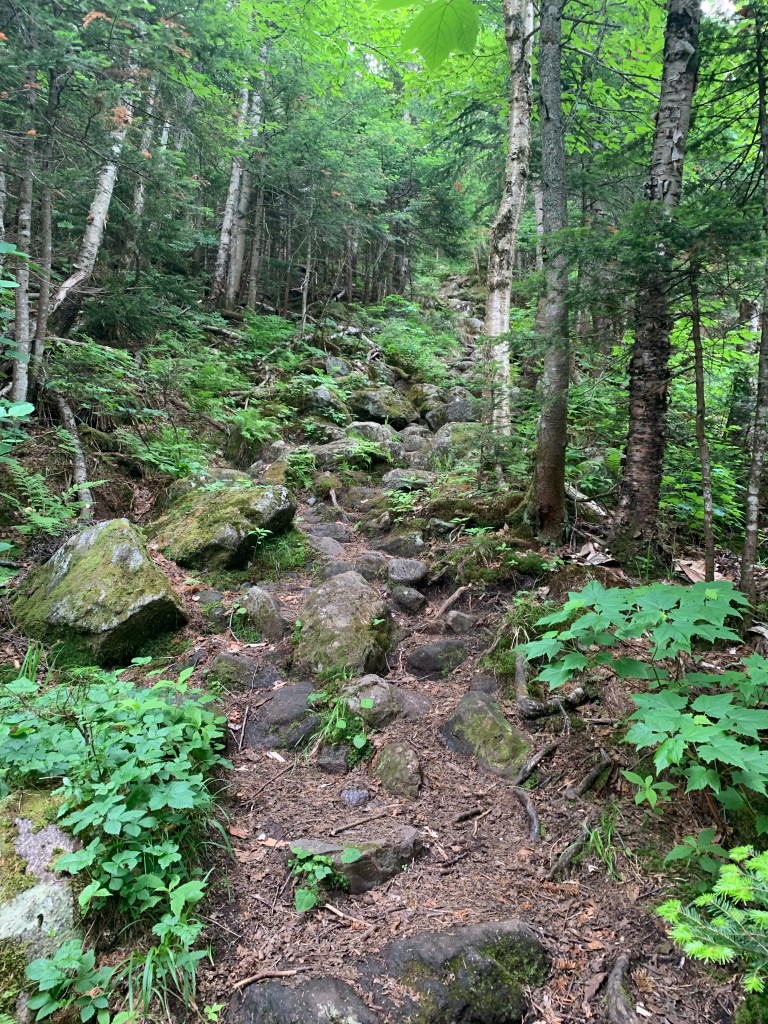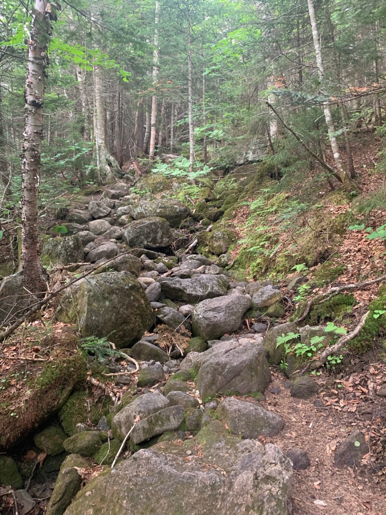 Stony Brook Trail starts pretty flat. After 2 miles I had only gained about 700 feet in elevation. Being about a 5 mile hike to the top of Moriah, I knew this trail was going to go UP very soon and in a pretty substantial way. That happened at about 2.6 miles. The trail went from a wide old logging road to a narrow, boulder infested scramble for the next 1.5 miles or so. Very steep with long sections of scrambles that required some router planning to effectively navigate.