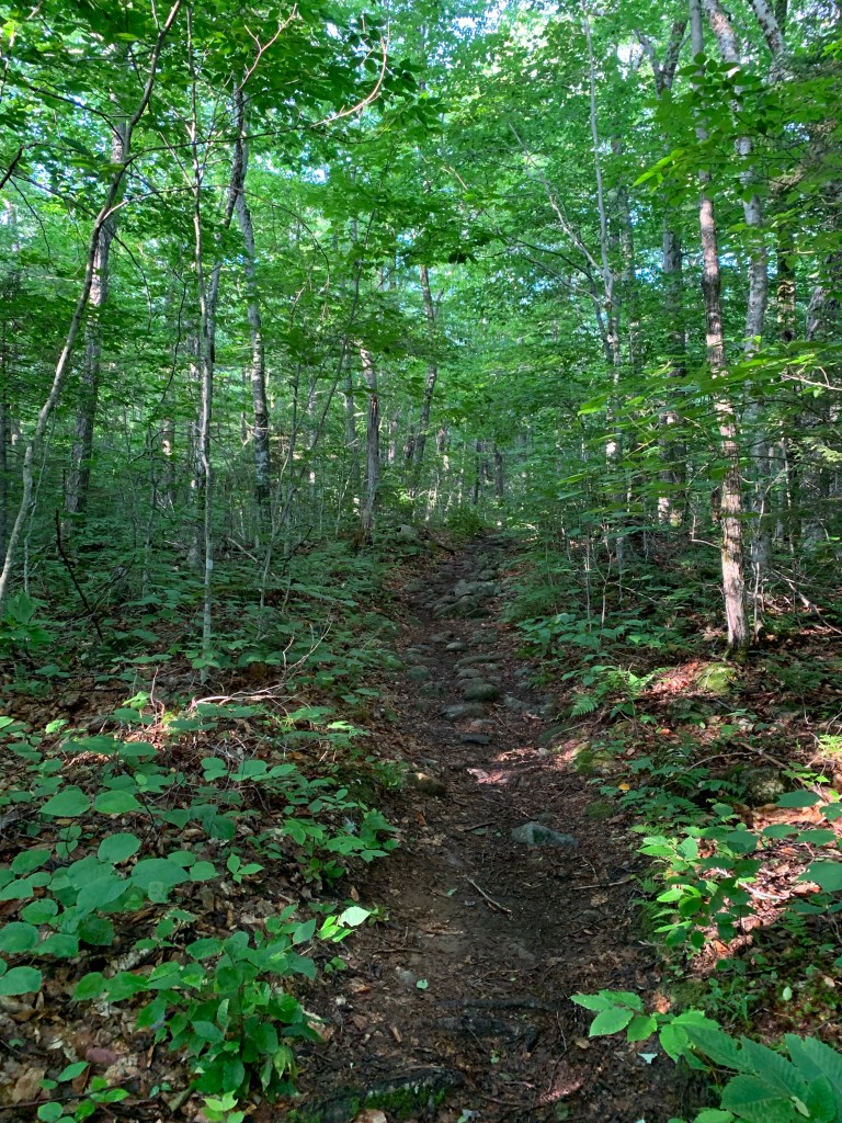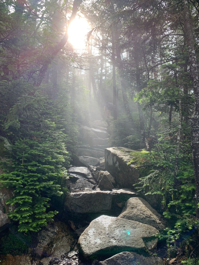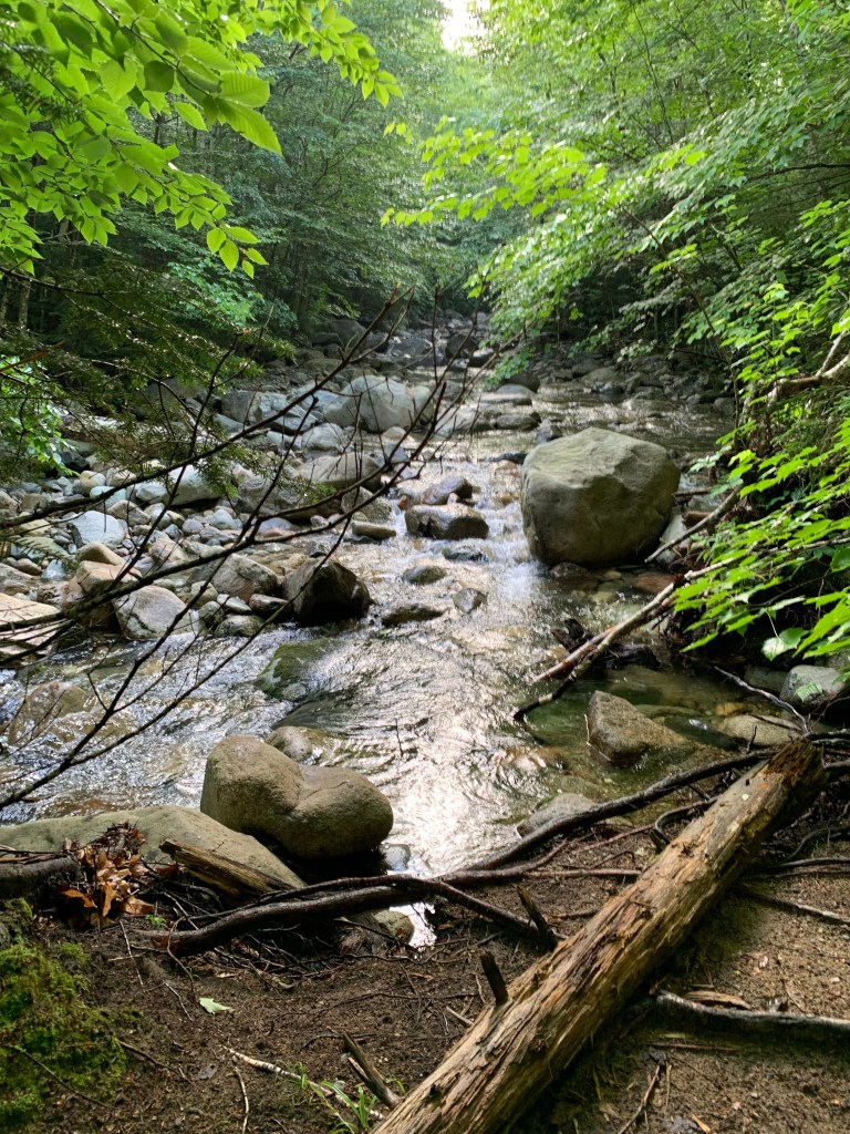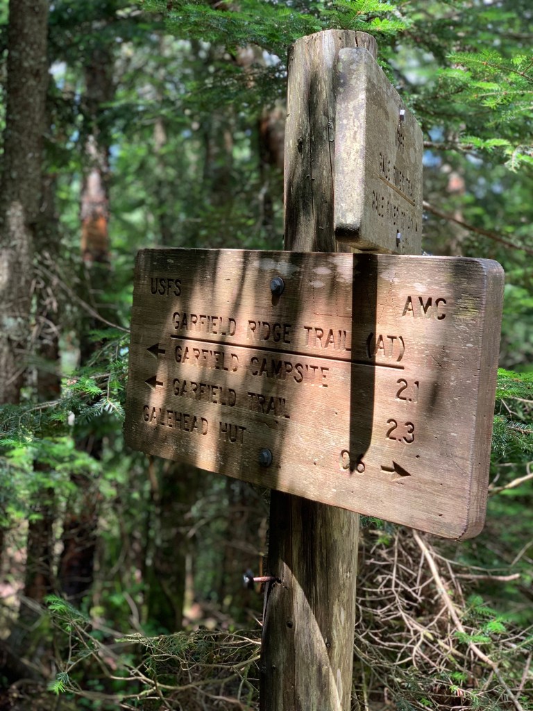 Buy 6:30 am I was walking the Gale River Trail making my way to the intersection of Gale River and Garfield Ridge Trails. This started as a fast, easy hike with no significant obstacles or elevation gain. I met a hiker who coincidently is from my neck of the woods, southern New Hampshire. We chatted about our plans for the day as we hiked. I learned that at about 3 miles in, the trail would get steeper. When the trail once again came close to the river, it veered right and went up. Not terrible, but much steeper than it had been. It remained pretty steep until I got to the Garfield Ridge Trail junction.