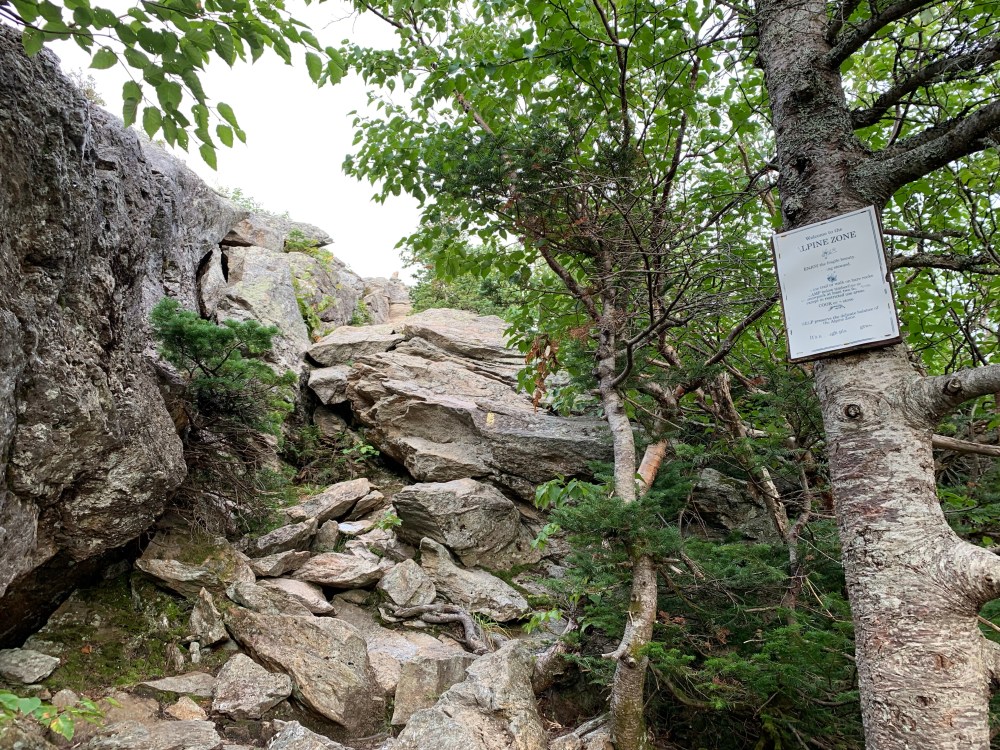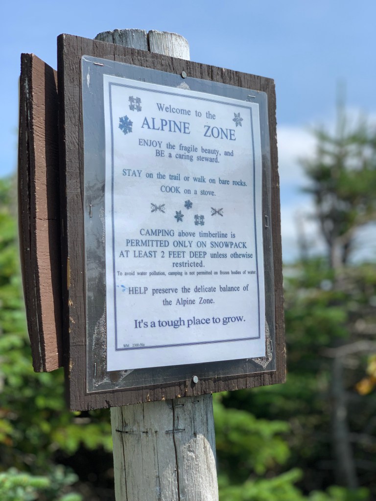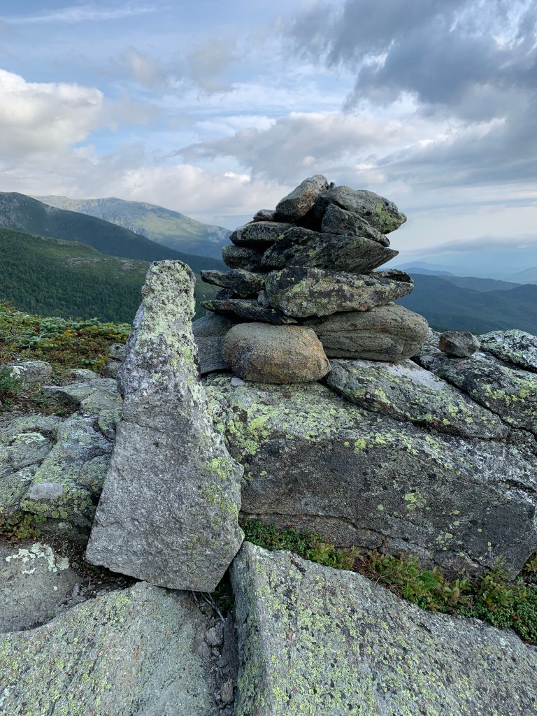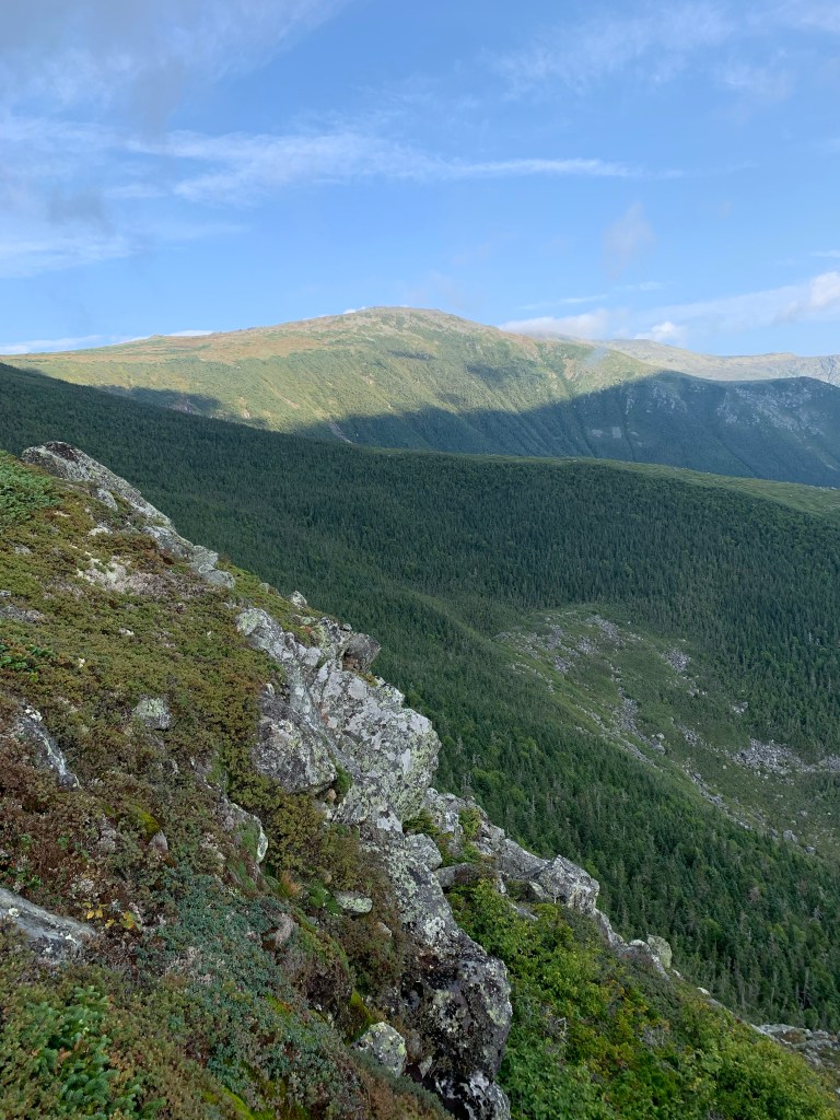 As I was making my way to the Davis Path junction, I looked back at Gulf Peak and noticed a hiker with his pack off. I hadn’t noticed that I was being chased, this hiker was making good time. I arrived at the junction and decided a little break for some water and snack was a good idea. I noticed that the hiker behind me was only a couple hundred yards behind now. He arrived and we chatted a bit about our plans for the day. Zack, as I learned his name was later on, was also headed for Isolation and then Washington after that. I have never hiked with anyone else but today Zack said ‘Should we push off toward Isolation?’. I thought, what the heck, seems like a nice guy. We began to make our way down Davis Path, losing about 1,500′ feet in elevation along the way. This was mostly in the trees but was really pretty. I’m not sure how much elevation gain there was after the loss to get to Isolation but it felt like 500-800′. The summit of Isolation was gained via a short spur trail.