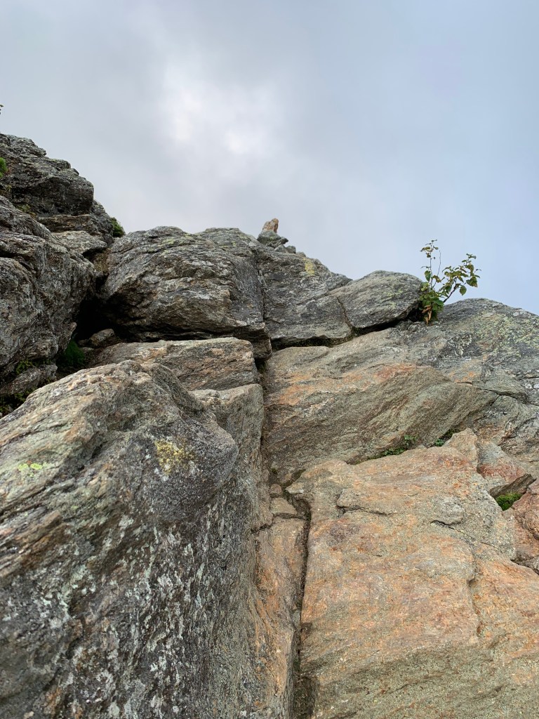 Once through this obstacle, I was above the tree line for the first time on this hike. These are the opportunities I hike for. Getting above the tree line. I call it “going to church”. I would actually be in and out of tree line for a bit until I get just below the Davis Path junction. The steep boulder scrambles continue for a long time and the grade is moderate. I took a look at my watch and noted at this point that I had gained over 2000′ in elevation in 2 miles. A high point on the trek below Davis Path was Gulf Peak. An amazing and inspirational place to take in.