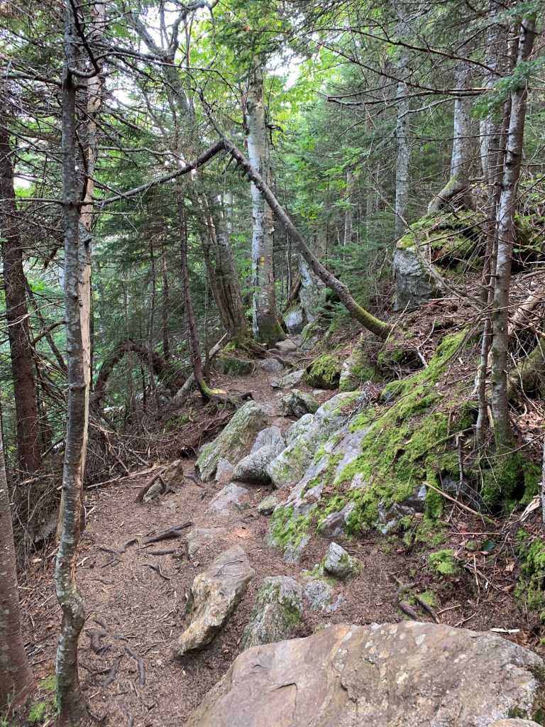 I arrived at the parking lot at 6:45 and was on the trail just before 7. I packed my stuff and started for the trail. I have been feeling a little more nervous of late about bear encounters. I tend to hike early and am always alone for many hours and miles. Perfect time for bears. I ordered some bear spray, should be here tomorrow. My route was to take me up Glen Boulder Trail to Davis Path. Davis Path would take me to Mt Isolation (via a short summit spur). Glen Boulder trail didn’t waste a whole lot of time gaining elevation. Not unreal gain, but most certainly did not ease into it.