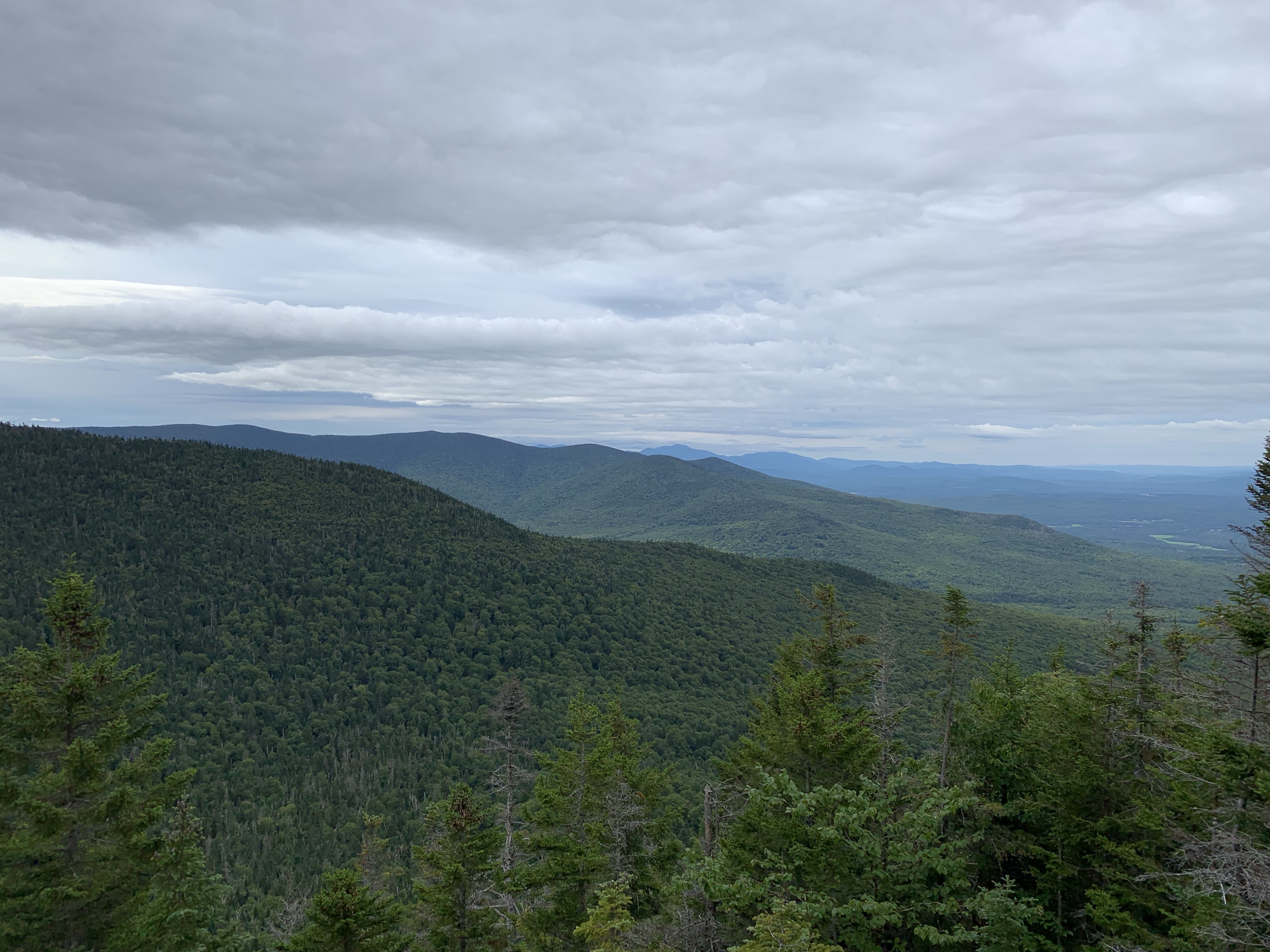 Leaving Willard Notch after a bit of a confusing trail junction, I began a very steep ascent of Mount Weeks. Mount weeks rises very close to 4000′ with over 700′ of prominence. With less than one hundred additional feet in elevation, it would qualify as a 4000 footer. I went from around 3000′ to 3900’+ in about 3/4 of a mile. It was a lot more than I expected. Having studied the map in detail at Terrace, I knew this was not the last of the steep ascents on the day. I walked down Mt Weeks and began the ascent of the last significant gain of the day, Middle Weeks Mountain. I dropped down to about 3200′ and quickly rose back to over 3600′ atop Middle Weeks. I was finally on the ridge that would lead me to Mt Waumbek, the days’ second 4000 Footer.