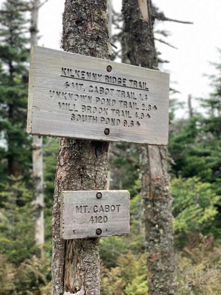 The Kilkenny Ridge Trail has a deceiving name. The trail ends up on a ridge but does not start that way. Other ridges I have hiked involve little elevation gain once on the ridge. This ridge trail is not that way. I went up Mt Cabot (4,120′), down Mt Cabot , up North Terrace Mountain (3,638′) and traverse to Terrace Mountain (3,550′), down Terrace Mountain, up Mount Weeks (3,901′) and down Mount Weeks, up Middle Weeks Mountain (3,684′) and finally found myself on the ridge.