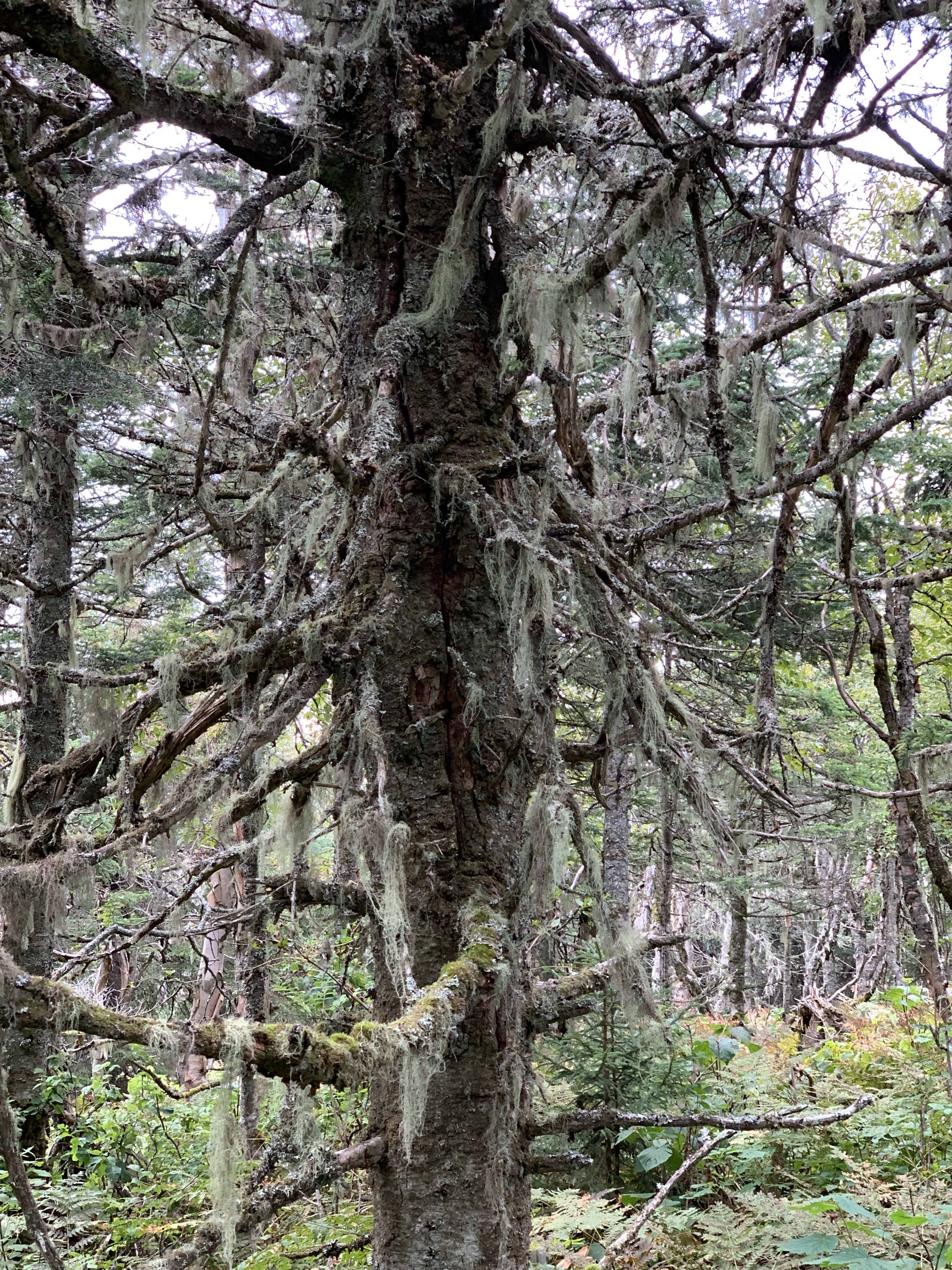 The hike up North Terrace Mountain was steep. The trail has many blow downs blocking the way. Some have been there long enough for defined routes to exist around them. Others I had to climb over or under. North Terrace rolls into Middle Terrace Mountain and eventually Terrace Mountain. Once atop North Terrace the traverse to the others is not too bad. I stopped on Terrace Mountain for a 15 minute break where I could give my watch a booster charge and have some food. On this second day of a 2 day outing, I packed an easy lunch. 4 uncrustables, almonds, pop corn and pickles. I ate a bit of each while admiring what there was of a view. I noted that I was 10 miles into the 20 mile day and had gained 3800 ‘ in elevation. Knowing I was in for 20 miles on the day and over 6000’ elevation gain, I was as mentally prepared as I could be for the second half.