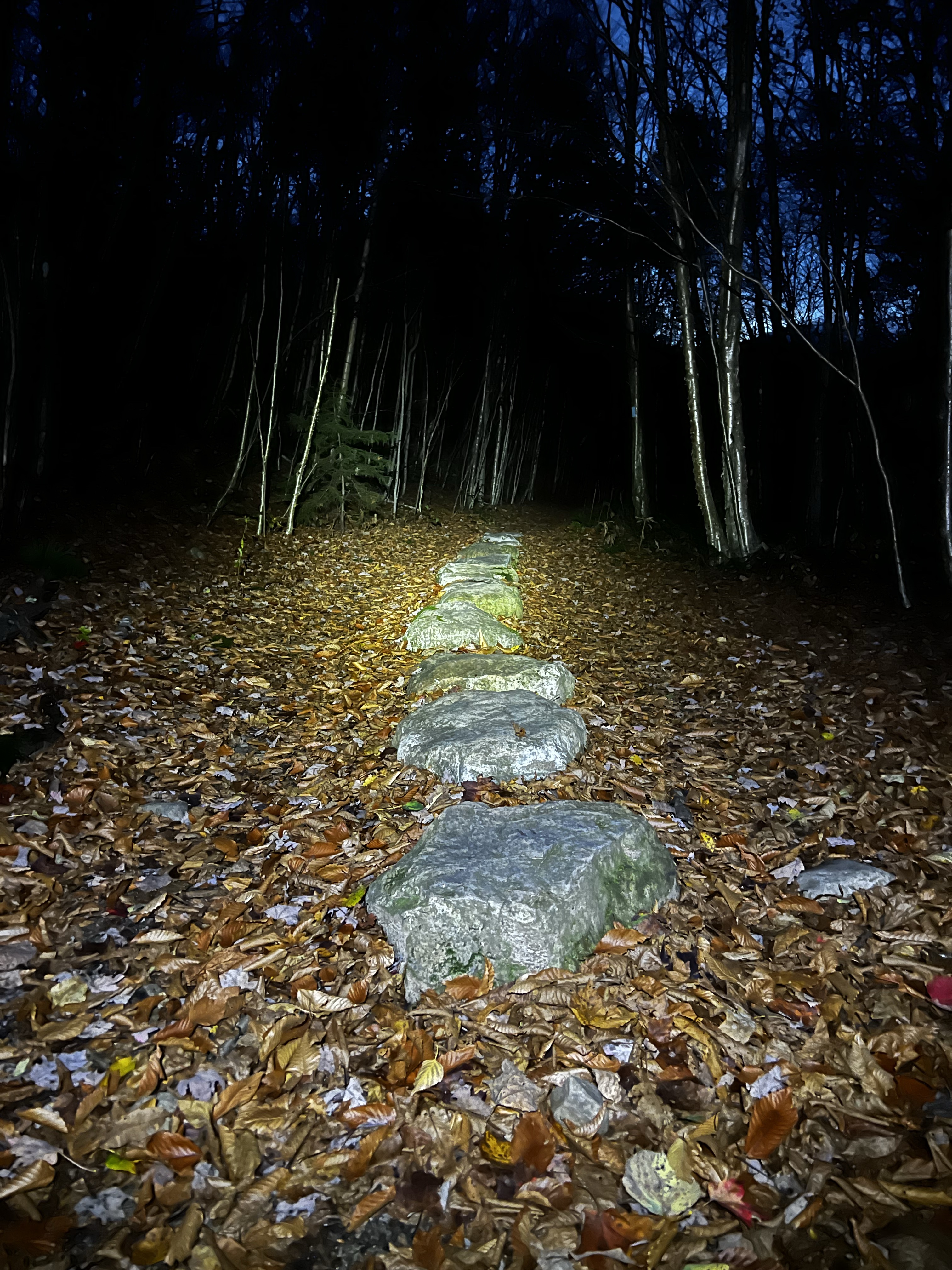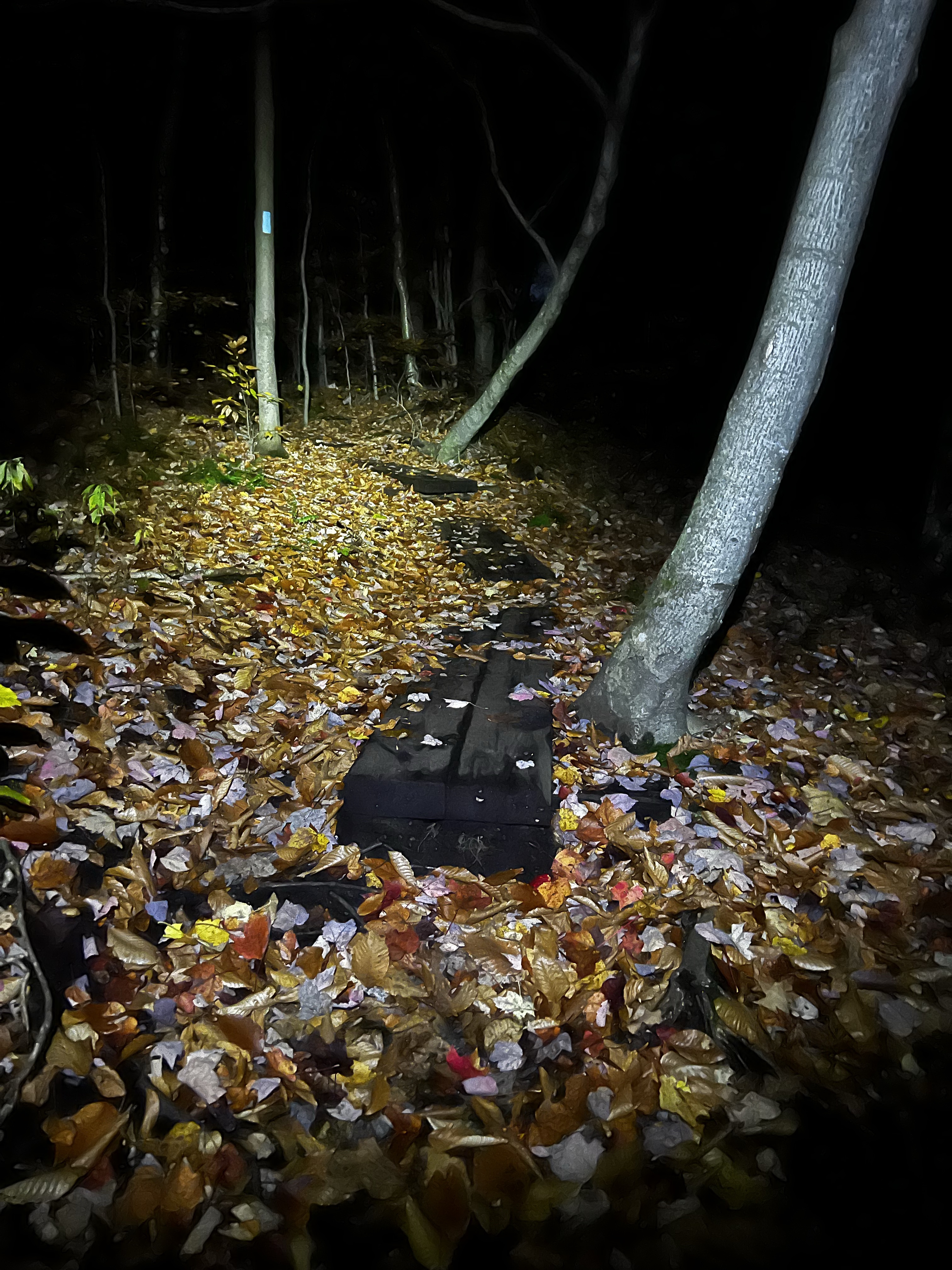 I made my way back to the main summit where I spent some more time. The light was changing quickly and the views with it. It just wasn’t getting old. When it did come time to go back down, the top section was very slow and slippery. Once to the tent site, it was smooth. The sun was obscured by the clouds which made for the classic fall New England walk in the woods. Toward the bottom, almost to the parking area, There was a bridge and an amazing waterfall.
