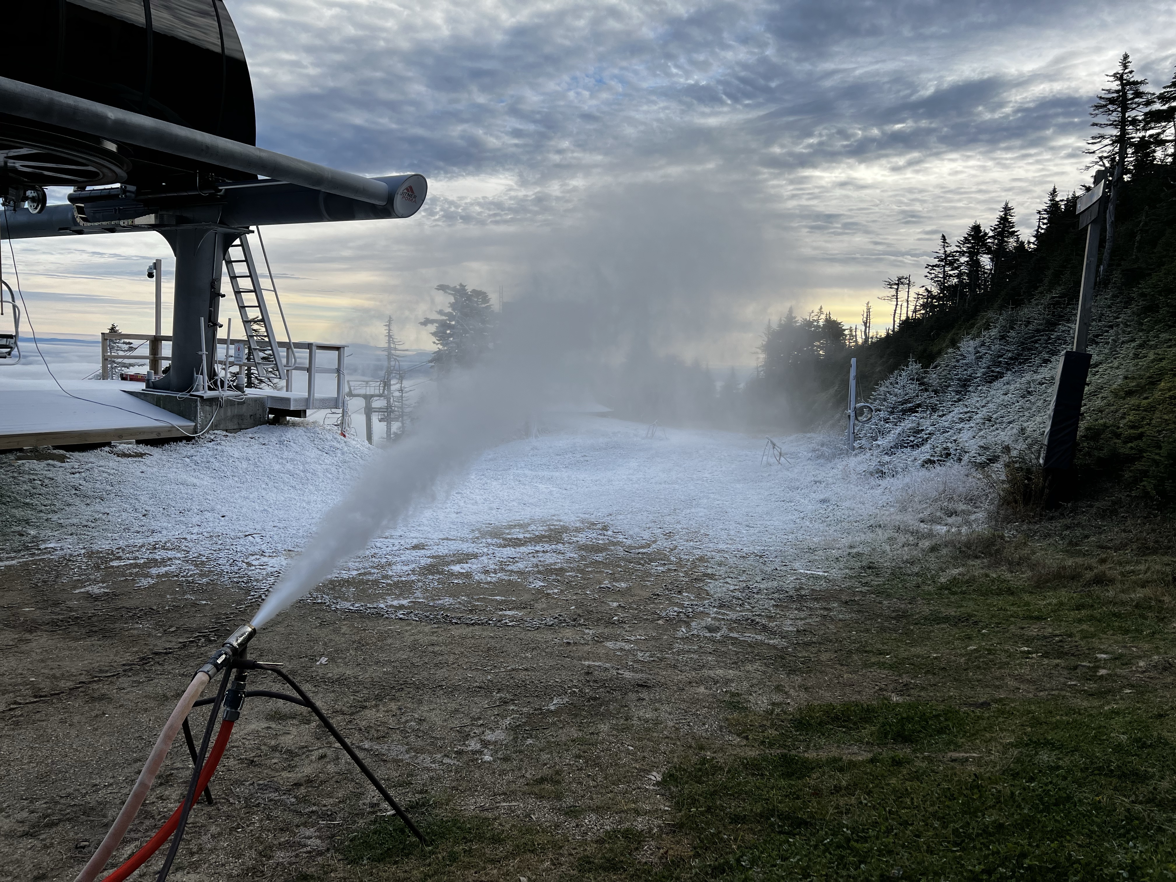 I made a point to spend a lot of extra time on the summit of Killington. I walked from the summit down Cat Walk to the unloading dock of the K1 Gondola and Summit lodge. From the lodge, there was an amazing walkway to another summit where I found snow guns blowing snow.