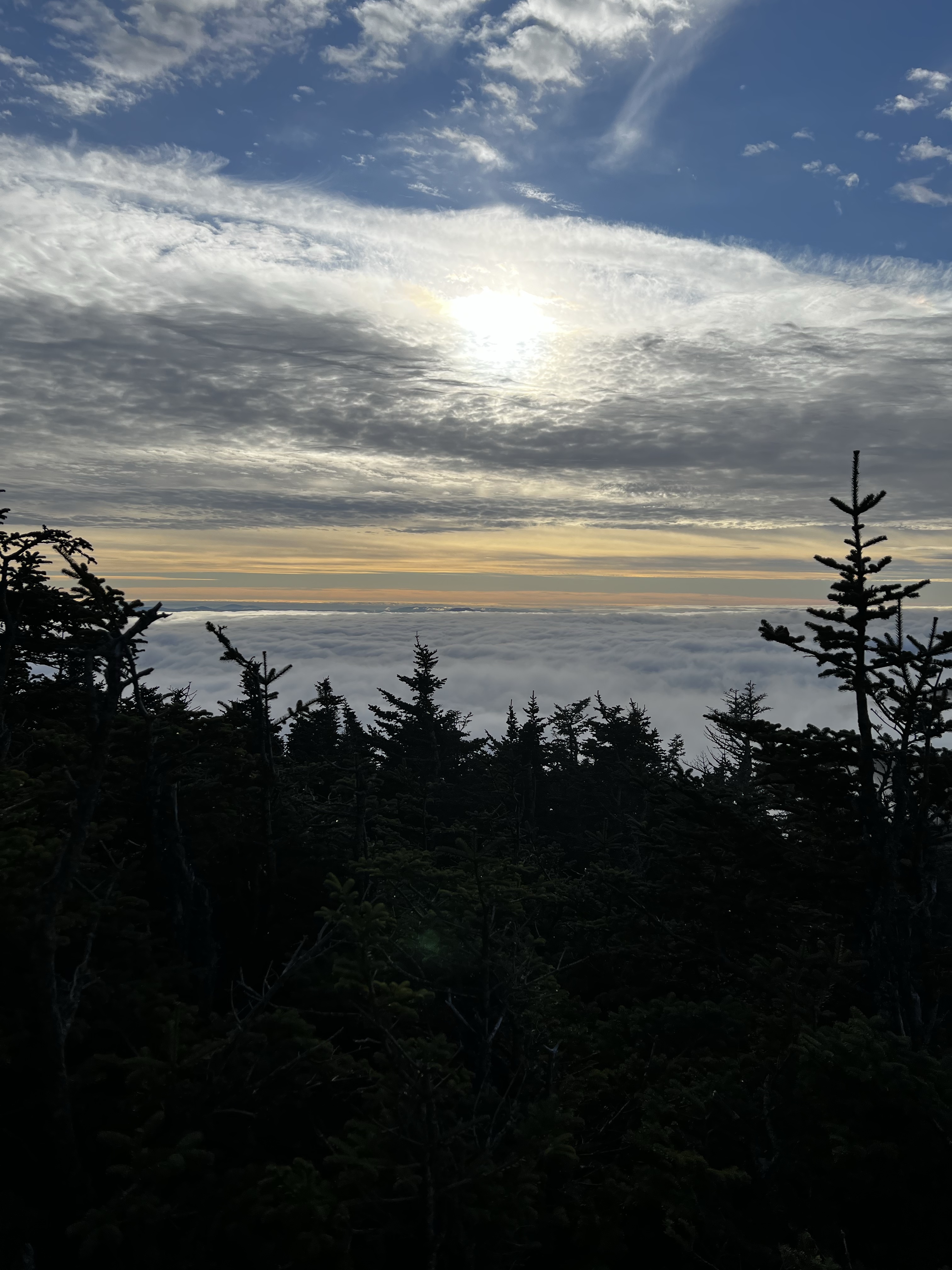 The reward for enduring the steeps was one of the best views I have seen. Those who go up there understand the magic of a clear view with undercast. The sun was breaking through the overcast making the undercast look like cotton candy.