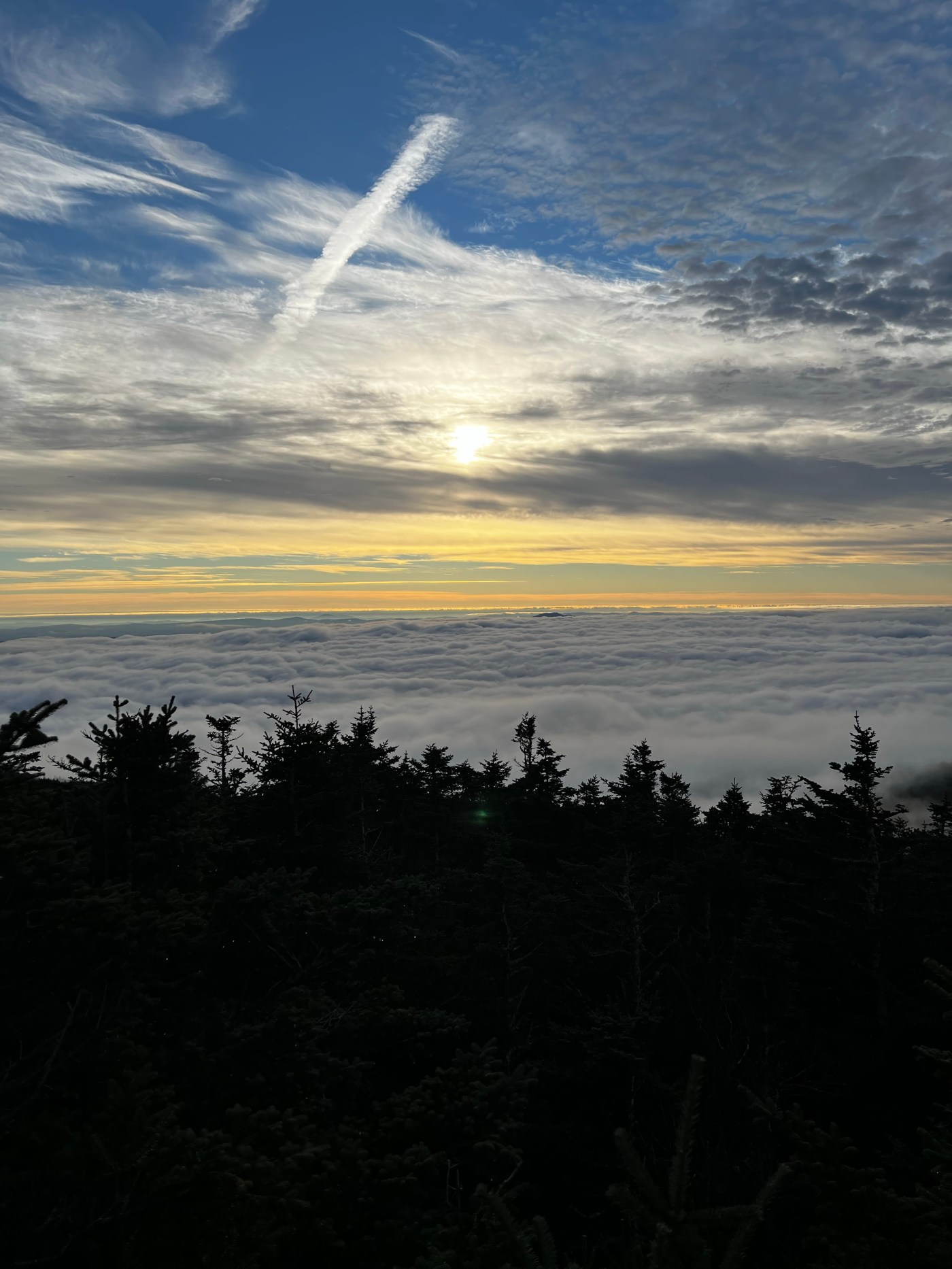 The reward for enduring the steeps was one of the best views I have seen. Those who go up there understand the magic of a clear view with undercast. The sun was breaking through the overcast making the undercast look like cotton candy.